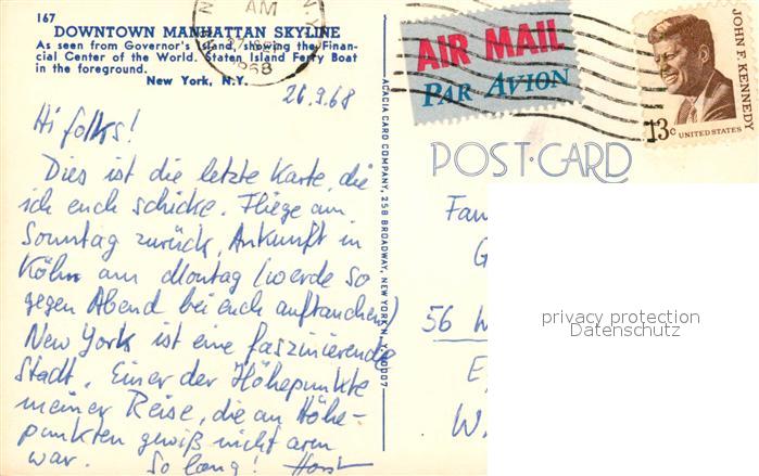 73051292 old postcard Manhattan New York Skyline postalisch gelaufen Erhaltung siehe scans [KathaD81] KatCode: 14140340000000