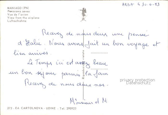 Maniago Vue aerienne postalisch nicht gelaufen Erhaltung siehe scans