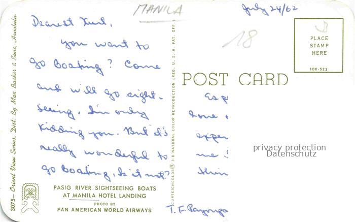 74141684 Manila Philippines Manila Hotel postalisch nicht gelaufen Erhaltung siehe scans [WerneD78] KatCode: 12240