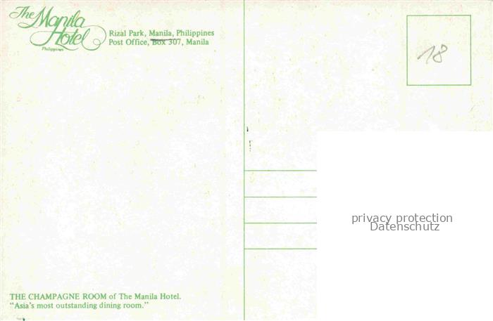 74141818 Manila Philippines The Manila Hotel Rizal Park postalisch nicht gelaufen Erhaltung siehe scans [WerneD78] KatCode: 12240