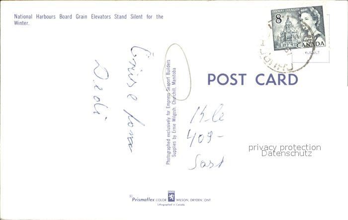 old postcard Manitoba National Harbours Board Grain Elevators Stand Silent for the Winter postalisch gelaufen Erhaltung siehe scans