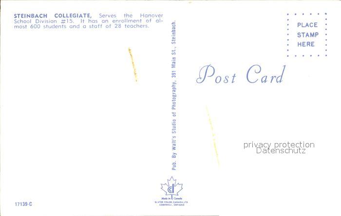 Manitoba Steinbach Collegiate postalisch nicht gelaufen Erhaltung siehe scans