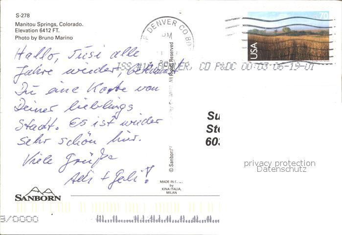 72488811 old postcard Manitou Springs Kirche postalisch gelaufen Erhaltung siehe scans KatCode: 14140060000000