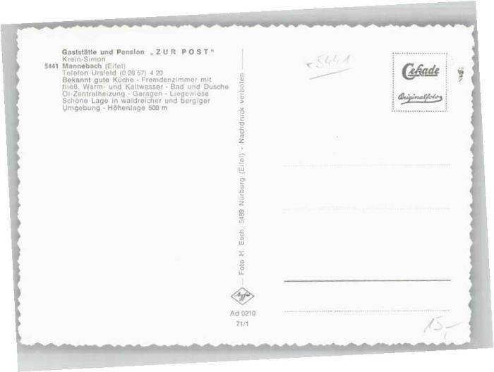 40655318 Mannebach Eifel Gasthaus Pension zur Post KatCode 11110007233225