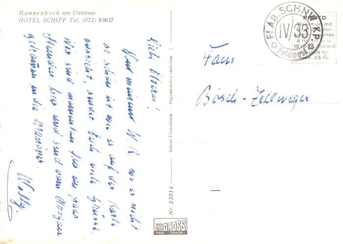 13872805 alte Postkarte Mannenbach-Salenstein TG Hotel Schiff postalisch gelaufen Feldpost – Stempel Erhaltung siehe scans [WerneD78] KatCode: 11470200630668