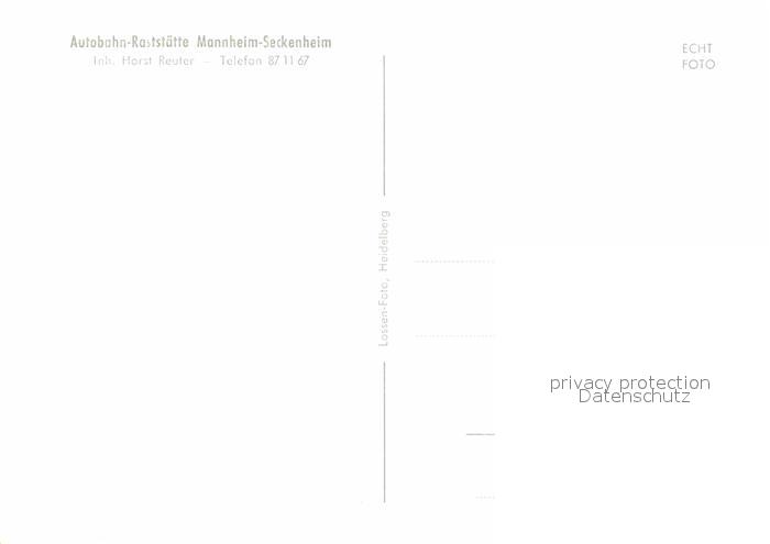 32659589 Mannheim Autobahn-Raststaette Mannheim-Seckenheim postalisch nicht gelaufen Erhaltung siehe scans [AndreD76] KatCode: 11110008222000