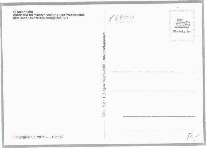 40706087 MANNHEIM BW Akademie fuer Wehrverwaltung Wehrtechnik Bundeswehrverwaltungsschule postalisch nicht gelaufen Alte Ansichtskarte Postkarte Katcode 11110008222000
