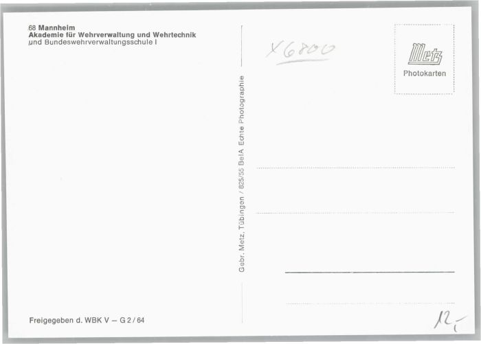 40706085 MANNHEIM BW Akademie fuer Wehrverwaltung Wehrtechnik Bundeswehrverwaltungsschule postalisch nicht gelaufen Alte Ansichtskarte Postkarte Katcode 11110008222000