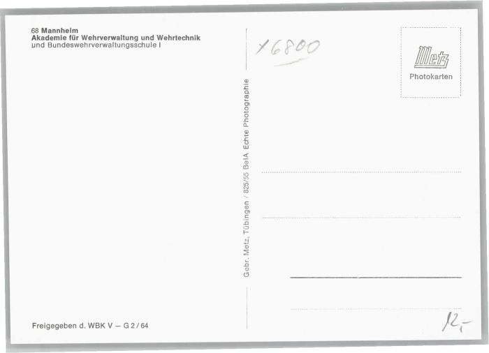 40706092 MANNHEIM BW Akademie fuer Wehrverwaltung Wehrtechnik Bundeswehrverwaltungsschule postalisch nicht gelaufen Alte Ansichtskarte Postkarte Katcode 11110008222000