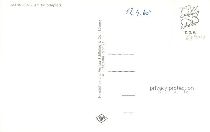 43367749 MANNHEIM BW Am Paradeplatz postalisch nicht gelaufen Erhaltung siehe scans [WerneD78] Wern Katcode 11110008222000