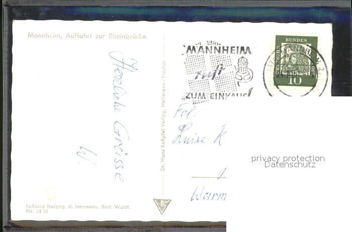 71848605 alte Postkarte MANNHEIM BW Auffahrt Rheinbruecke Fliegeraufnahme postalisch gelaufen KatCode: 11110008222000
