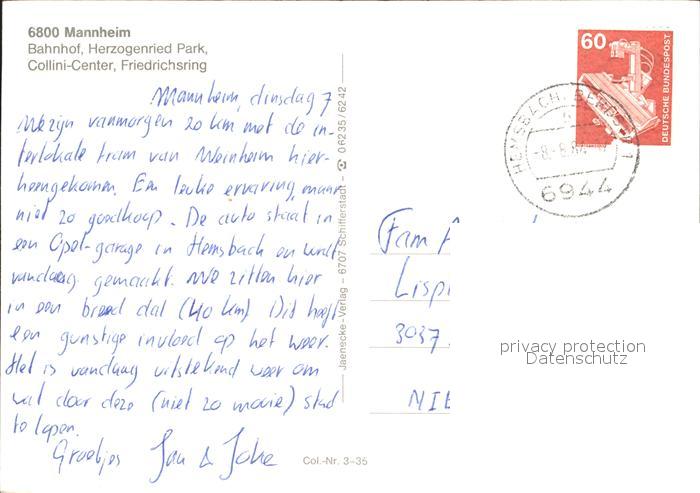 72272981 alte Postkarte MANNHEIM BW Bahnhof Herzogenried Park Collini-Center Friedrichsring postalisch gelaufen Erhaltung siehe scans KatCode: 11110008222000