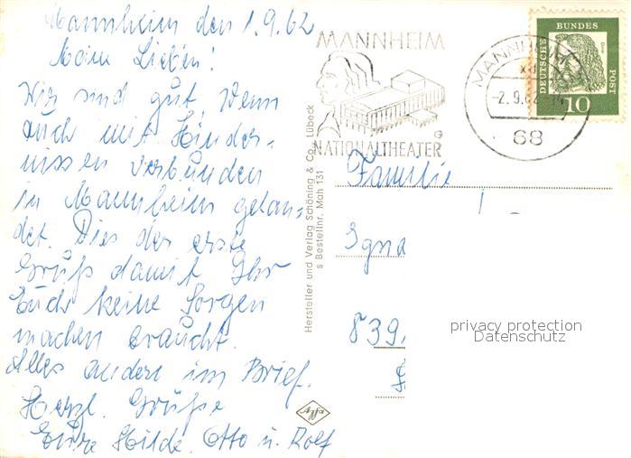 72986517 alte Postkarte MANNHEIM BW Bauwerke Teilansichten postalisch gelaufen Erhaltung siehe scans [WerneD78] KatCode: 11110008222000