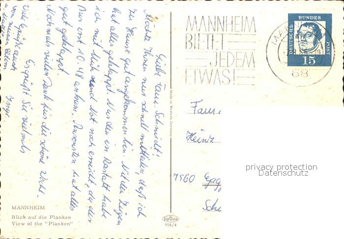72582070 alte Postkarte MANNHEIM BW Blick auf die Planken postalisch gelaufen Erhaltung siehe scans [WerneD78] KatCode: 11110008222000