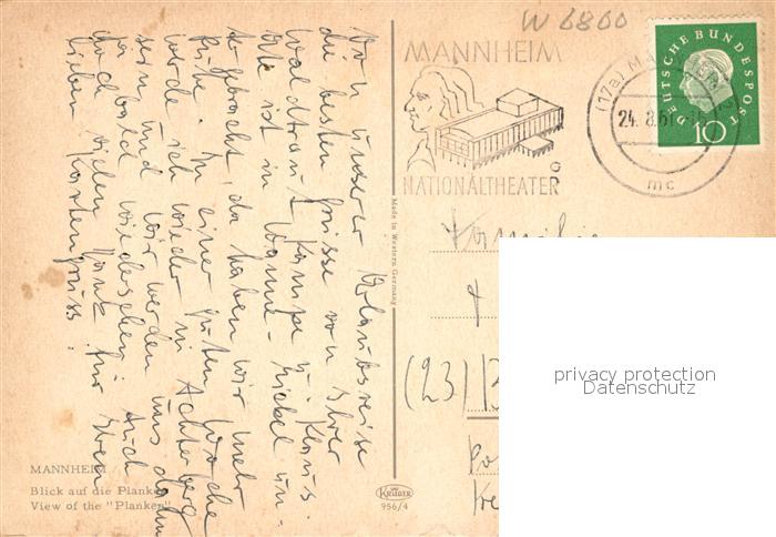 73121303 alte Postkarte MANNHEIM BW Blick auf die Planken postalisch gelaufen Erhaltung siehe scans [KathaD81] KatCode: 11110008222000