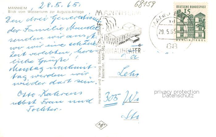 73761993 MANNHEIM BW Blick vom Wasserturm zur Augusta Anlage postalisch gelaufen Erhaltung siehe scans [WerneD78] alte Postkarte Wern Katcode 11110008222000
