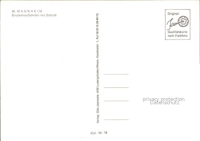 71994571 MANNHEIM BW Brueckenauffahrten Schloss postalisch nicht gelaufen KatCode: 11110008222000