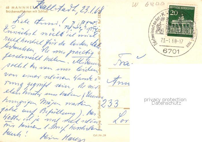 73121302 alte Postkarte MANNHEIM BW Brueckenauffahrten Schloss postalisch gelaufen Erhaltung siehe scans [KathaD81] KatCode: 11110008222000