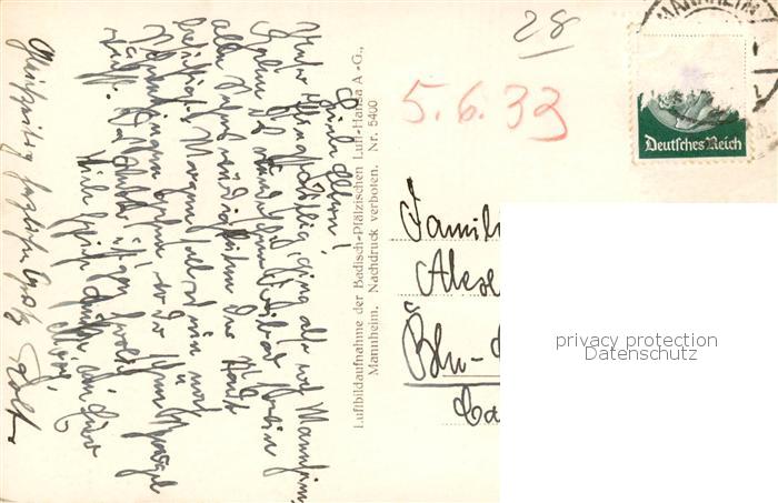 73803197 MANNHEIM BW Fliegeraufnahme postalisch gelaufen Erhaltung siehe scans [FriedD77] alte Postkarte Frie Katcode 11110008222000