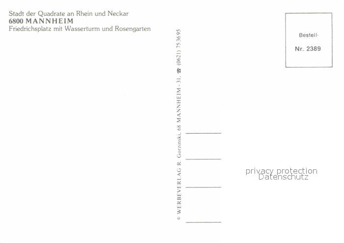 72667215 MANNHEIM BW Fliegeraufnahme Friedrichsplatz mit Wasserturm und Rosengarten postalisch nicht gelaufen Erhaltung siehe scans [LiesaD40] KatCode: 11110008222000