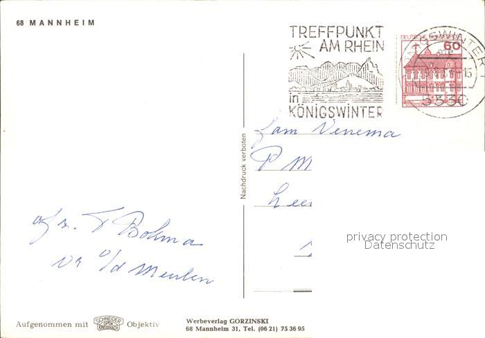 72270195 alte Postkarte MANNHEIM BW Fliegeraufnahme Rheinpartie bei Nacht postalisch gelaufen Erhaltung siehe scans KatCode: 11110008222000