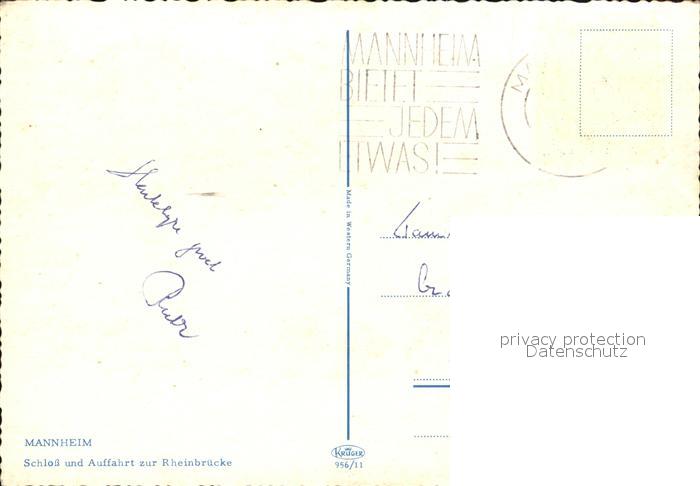 72607803 alte Postkarte MANNHEIM BW Fliegeraufnahme Schloss und Auffahrt zur Rheinbruecke postalisch gelaufen Erhaltung siehe scans [LiesaD40] KatCode: 11110008222000