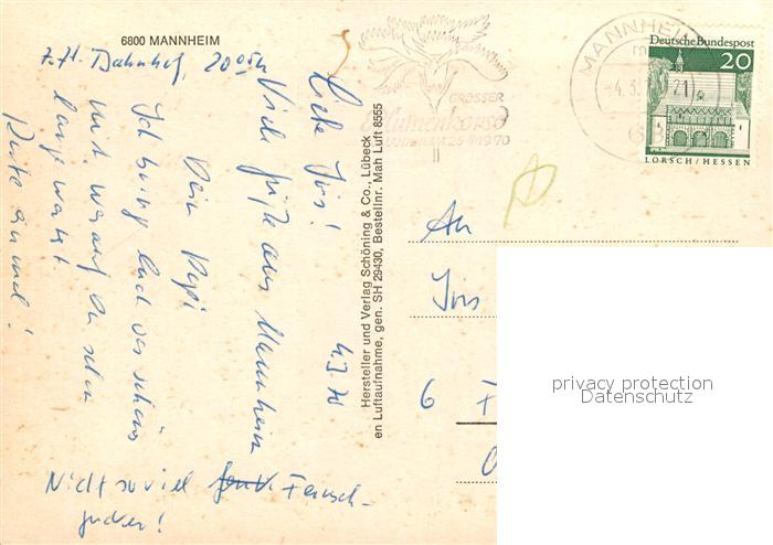 73208424 alte Postkarte MANNHEIM BW Fliegeraufnahme postalisch gelaufen Erhaltung siehe scans [KathaD81] KatCode: 11110008222000