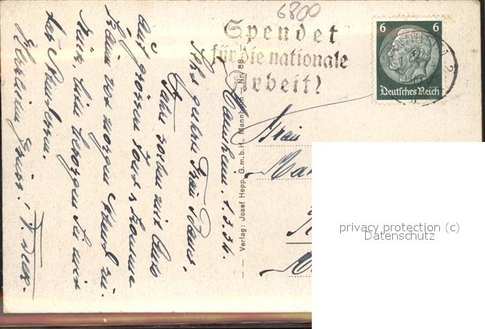 71494471 alte Postkarte MANNHEIM BW Friedrichspark postalisch gelaufen Erhaltung siehe scans KatCode: 11110008222000