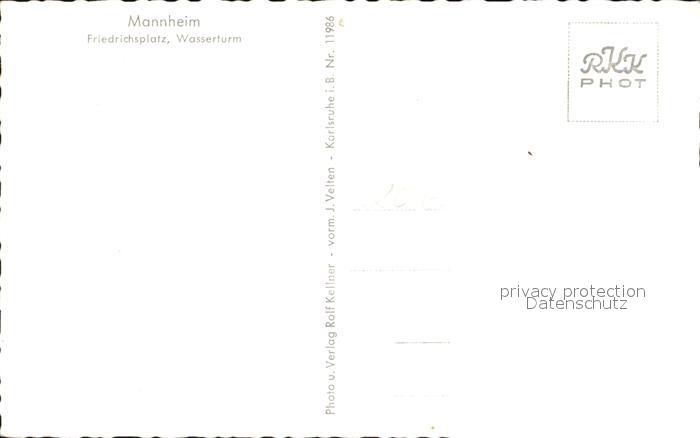 72539491 MANNHEIM BW Friedrichsplatz Wasserturm postalisch nicht gelaufen Erhaltung siehe scans [LiesaD40 kt122box] KatCode: 11110008222000