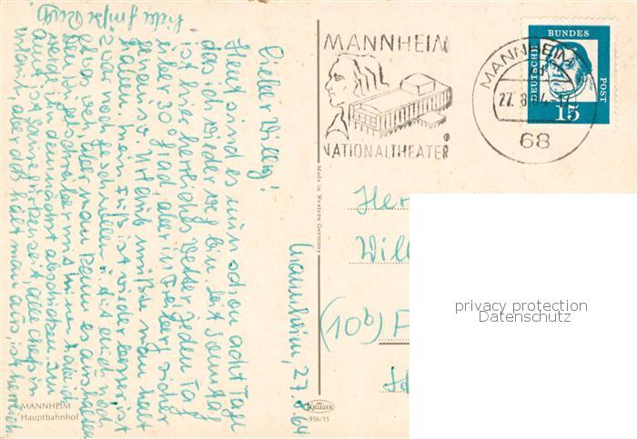 73830371 MANNHEIM BW Hauptbahnhof postalisch gelaufen Erhaltung siehe scans [FriedD77] alte Postkarte Frie Katcode 11110008222000
