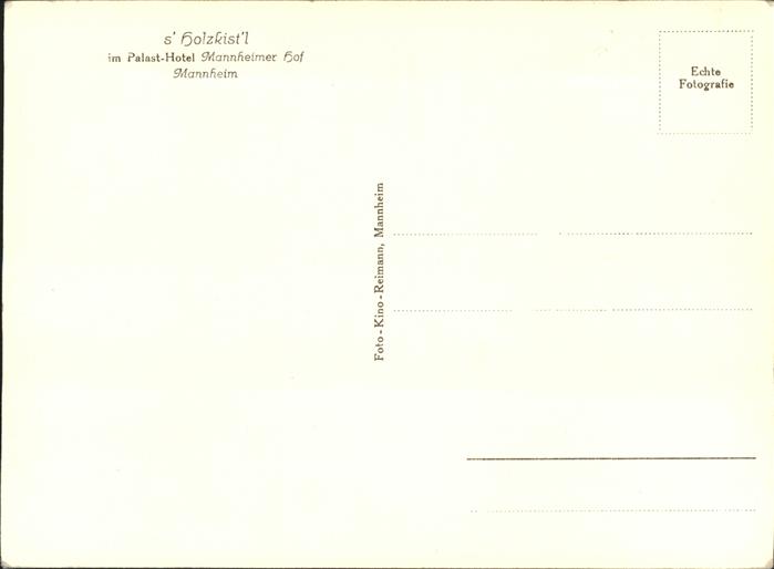 41079347 MANNHEIM BW Holzkistl Palast Hotel postalisch nicht gelaufen Alte Ansichtskarte Postkarte Elvi Katcode 11110008222000