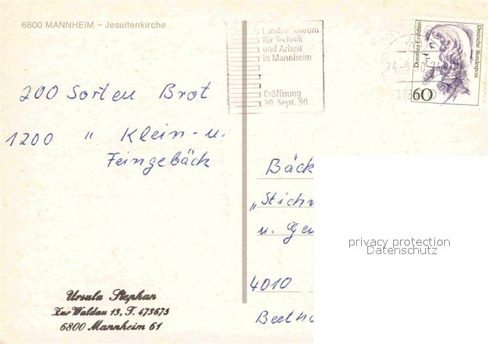 72744018 alte Postkarte MANNHEIM BW Jesuitenkirche postalisch gelaufen Erhaltung siehe scans [FriedD77] KatCode: 11110008222000