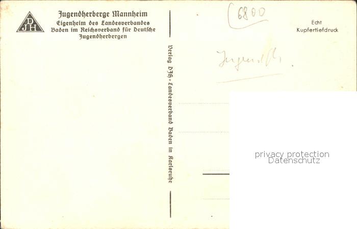 41801188 MANNHEIM BW Jugendherberge postalisch nicht gelaufen Erhaltung siehe scans Alte Ansichtskarte Postkarte Nata Katcode 11110008222000
