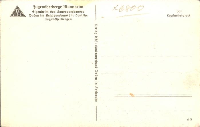 41347408 MANNHEIM BW Jugendherberge postalisch nicht gelaufen gute Erhaltung Alte Ansichtskarte Postkarte hz_W Katcode 11110008222000