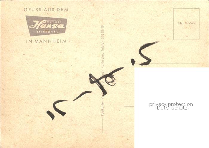 72096455 MANNHEIM BW Kaufhaus Hansa am Paradeplatz postalisch nicht gelaufen Erhaltung siehe scans KatCode: 11110008222000