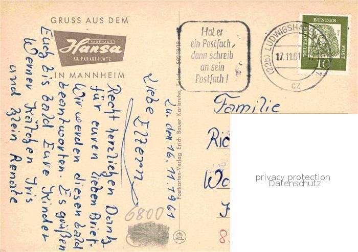 72840626 alte Postkarte MANNHEIM BW Kaufhaus Hansa postalisch gelaufen Erhaltung siehe scans [FriedD77] KatCode: 11110008222000