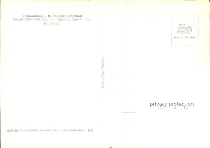 72557777 MANNHEIM BW Kurfuerstliches Schloss Rittersaal postalisch nicht gelaufen Erhaltung siehe scans [KathaD79] KatCode: 11110008222000