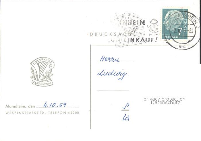 72100429 alte Postkarte MANNHEIM BW Liederhalle Kuenstlerkarte Komik postalisch gelaufen Erhaltung siehe scans KatCode: 11110008222000