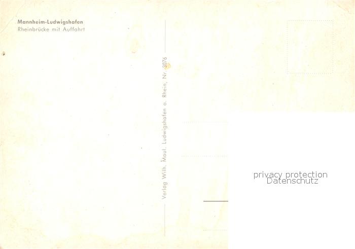 73128382 MANNHEIM BW Ludwingshafen Rheinbruecke postalisch nicht gelaufen Erhaltung siehe scans [NatalD47] KatCode: 11110008222000
