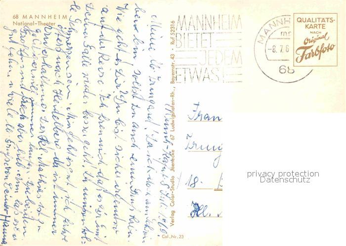72846009 alte Postkarte MANNHEIM BW National-Theater postalisch gelaufen Erhaltung siehe scans [LiesaD40] KatCode: 11110008222000