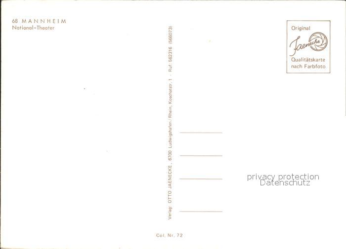 72113930 MANNHEIM BW National Theater postalisch nicht gelaufen Erhaltung siehe scans KatCode: 11110008222000