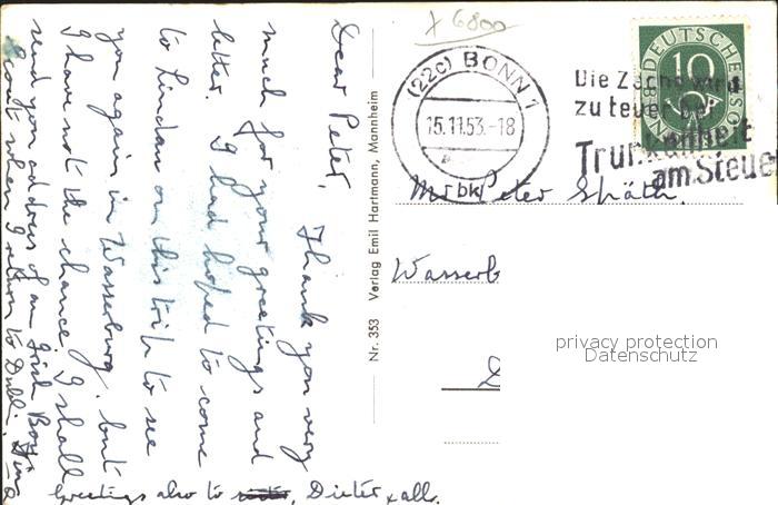 41801235 MANNHEIM BW Neue Planken Blick Wasserturm Strassenbahn postalisch gelaufen Erhaltung siehe scans Alte Ansichtskarte Postkarte alte Postkarte Nata Katcode 11110008222000