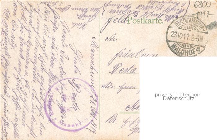73694592 MANNHEIM BW Paradeplatz Denkmal postalisch gelaufen Feldpost – Stempel Erhaltung siehe scans [FriedD77] Feldpost – Stempel alte Postkarte Frie Katcode 11110008222000