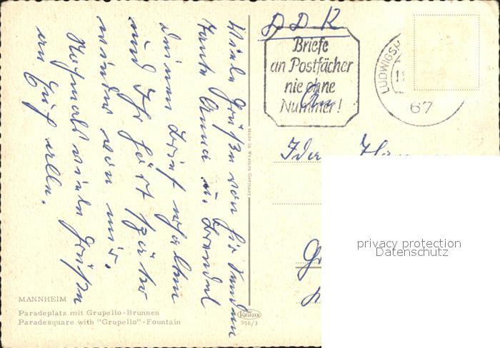72523302 alte Postkarte MANNHEIM BW Paradeplatz Grupello-Brunnen postalisch gelaufen Erhaltung siehe scans KatCode: 11110008222000