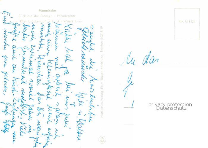 72631750 MANNHEIM BW Planken Paradeplatz Rheinbrueckenauffahrt Wasserturm postalisch nicht gelaufen Erhaltung siehe scans [LiesaD40] KatCode: 11110008222000