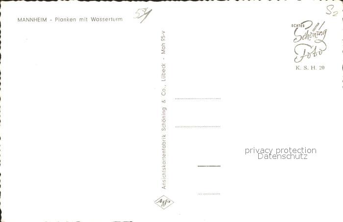 32148974 MANNHEIM BW Planken Wasserturm postalisch nicht gelaufen Erhaltung siehe scans KatCode: 11110008222000
