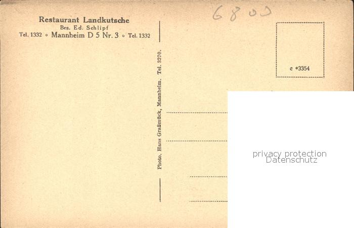 41801203 MANNHEIM BW Restaurant Landkutsche postalisch nicht gelaufen Erhaltung siehe scans Alte Ansichtskarte Postkarte Nata Katcode 11110008222000