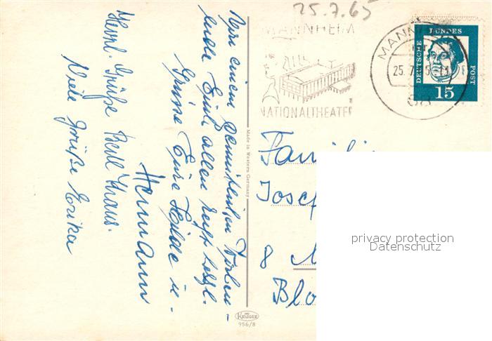 73146244 alte Postkarte MANNHEIM BW Rhein Kirche Brunnen Marktplatz postalisch gelaufen Erhaltung siehe scans [WerneD78] KatCode: 11110008222000