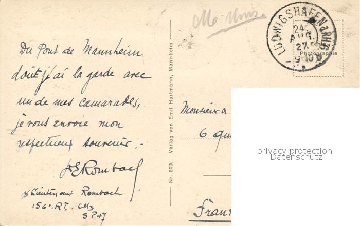 43492214 MANNHEIM BW Rheinbr?cke postalisch gelaufen Erhaltung siehe scans [LiesaD40] alte Postkarte Lies Katcode 11110008222000