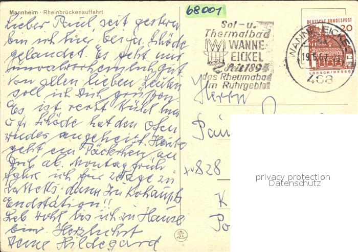 71944787 alte Postkarte MANNHEIM BW Rheinbrueckeenauffahrt Fliegeraufnahme postalisch gelaufen Erhaltung siehe scans KatCode: 11110008222000